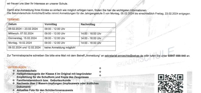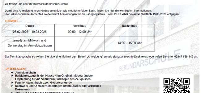 - Anmeldung für die Klasse 5