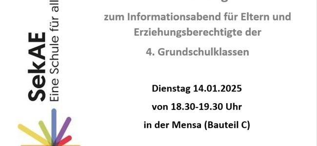Informationsabend für Eltern und Erziehungsberechtigte der 4. Grundschulklassen