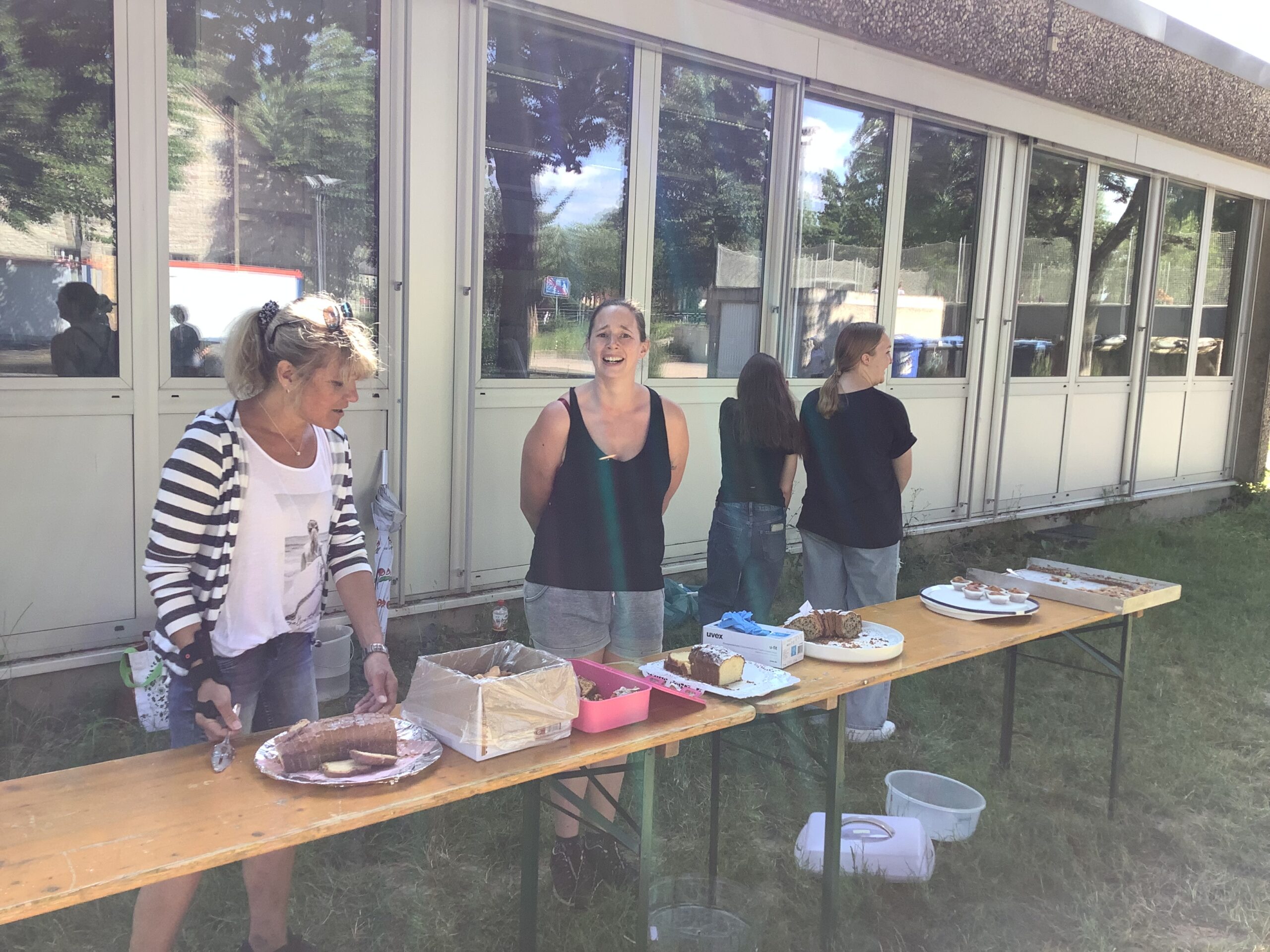 Neben den besonderen Leistungen der Schülerinnen und Schüler, darf das Engagement der ELTERNSCHAFT nicht unerwähnt bleiben. Hier bedanken wir uns recht herzlich für die Organisation der Verpflegungsstation. Frau Nina Kleegraf (Elternvertretung) sorgte mit zahlreichen Eltern, deren großzügigen Kuchenspenden und den vom Förderverein gesponserten Keksen und kühlem Wassereis für zusätzliche und ausreichend Energie bei den Kindern. Ein weiteres Dankeschön gilt auch insbesondere der Bäckerei Markus Hölkemann Wadersloh-Göttingen für Ihre leckere Kuchenspende. DANKE FÜR DIE UNTERSTÜTZUNG!!!