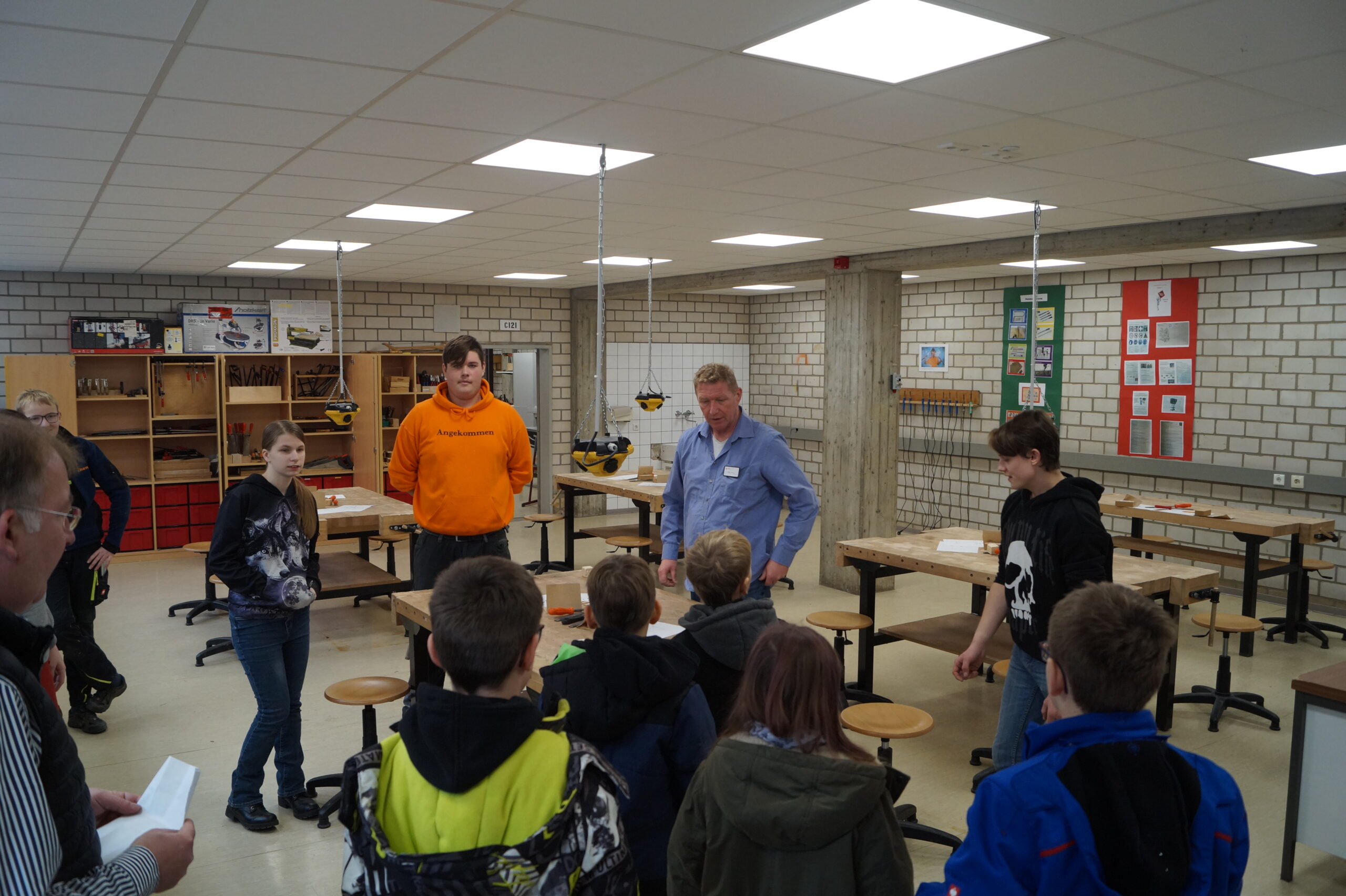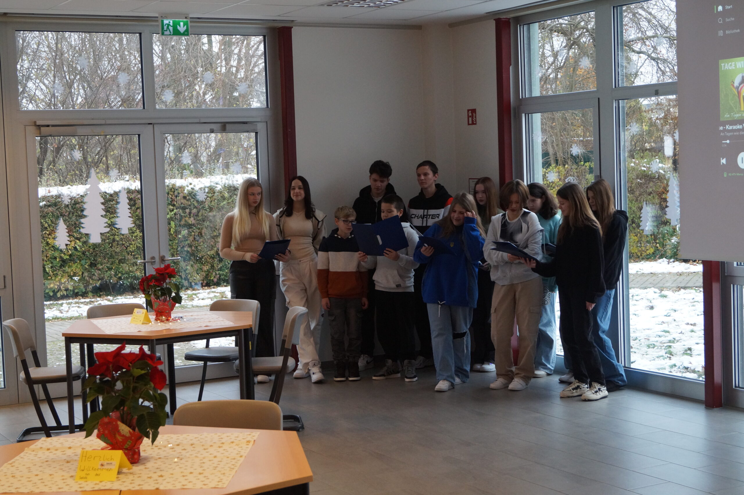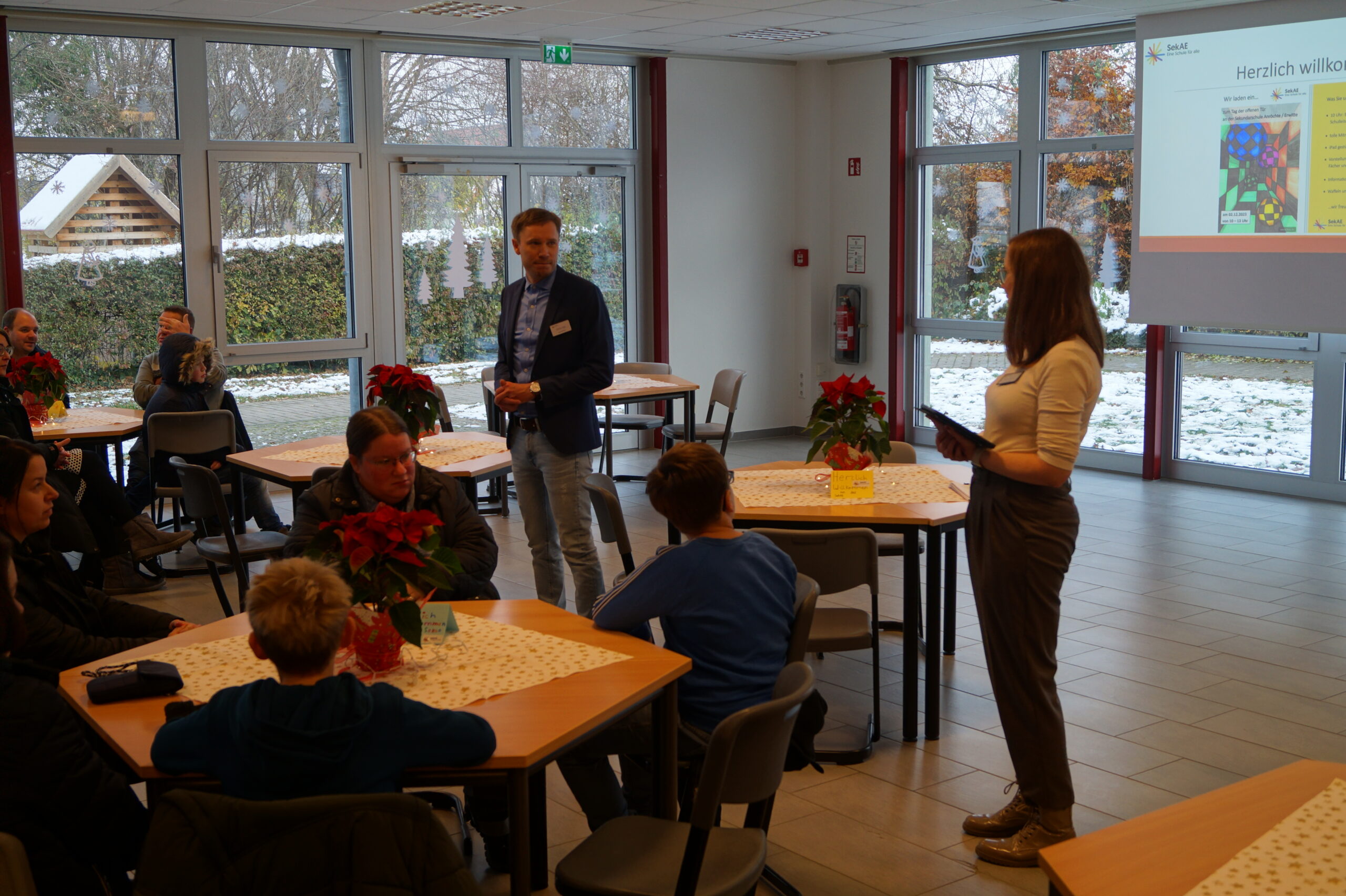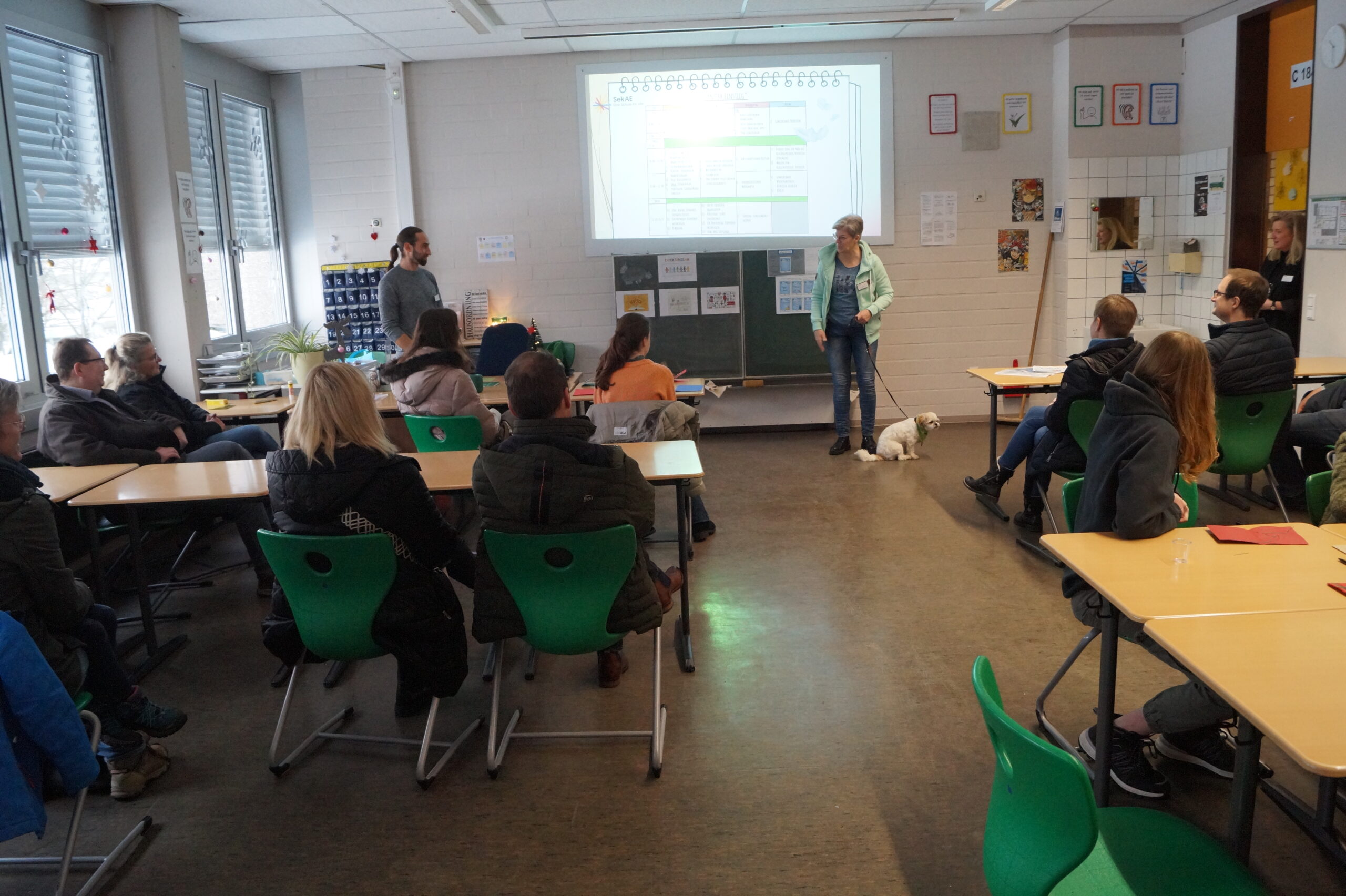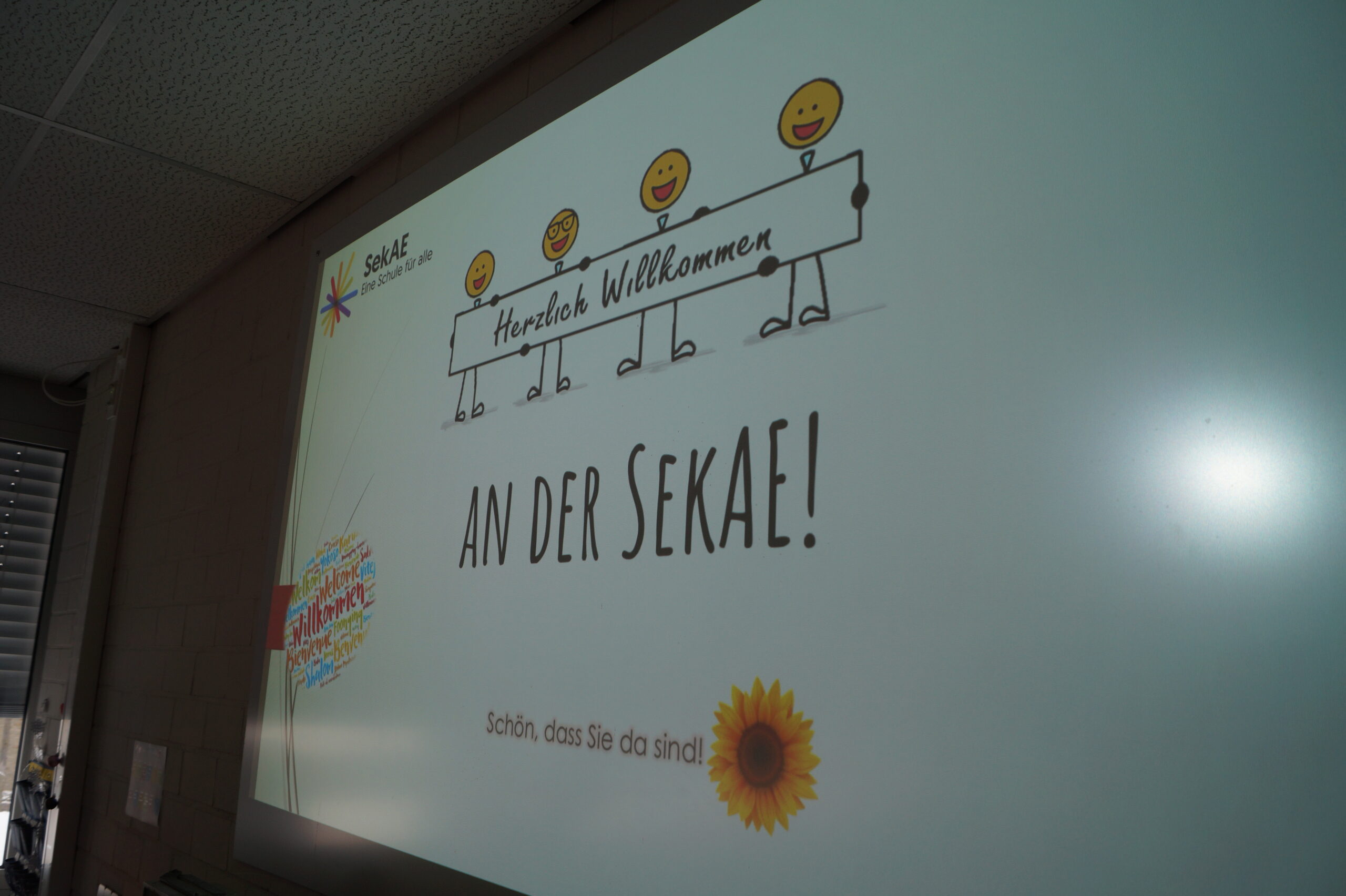 Zahlreiche interessierte Eltern besuchten am Tag der offenen Tür mit ihren Kindern unsere Sekundarschule. Um 10 Uhr wurden sie mit dem Song „an Tagen wie diesen“ von unseren Schülerinnen und Schülern aus der Sprachwerkstatt unter Leitung von Olena Mendelin musikalisch begrüßt. Im Anschluss gab das Schulleitungsteam Matthias Bigge und Katharina Hens einen Einblick in das Konzept der Schule.