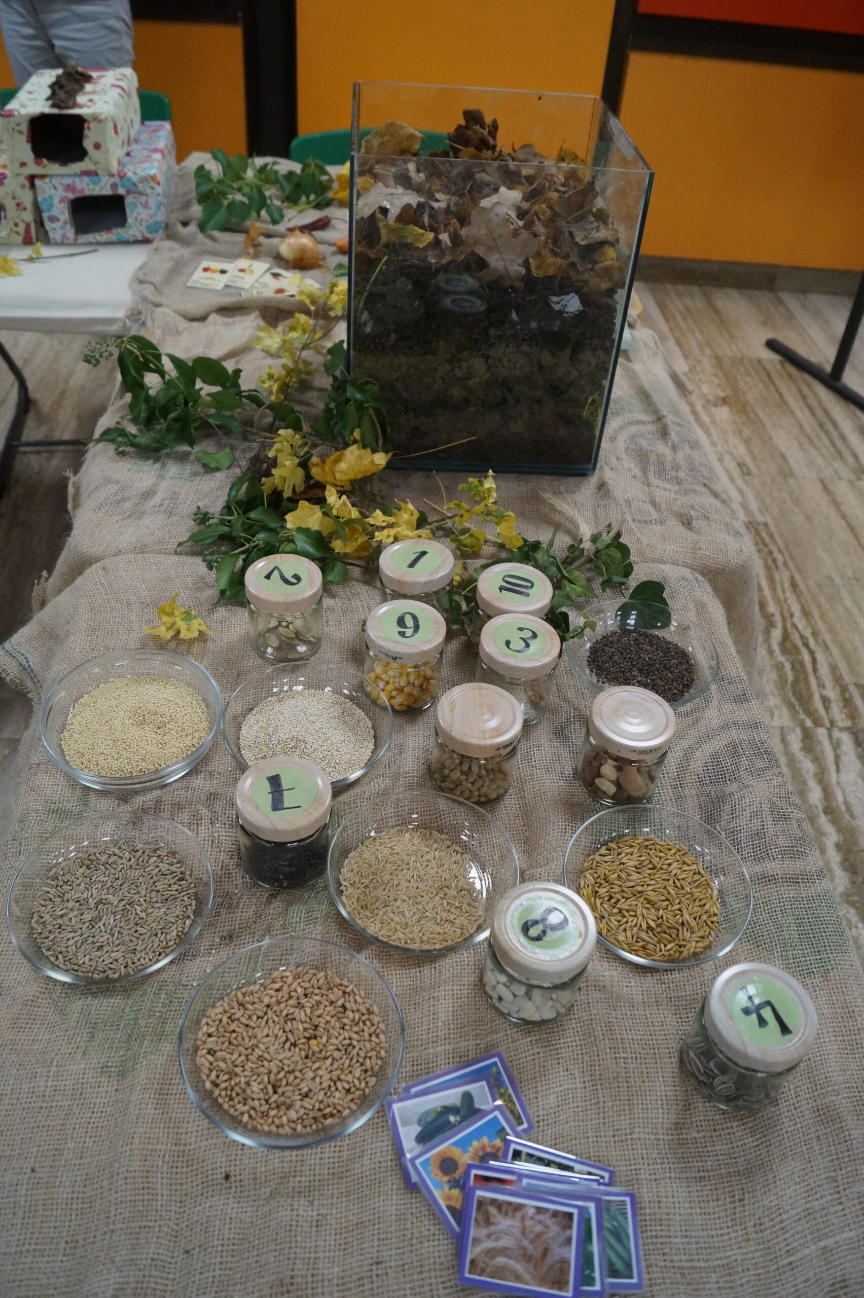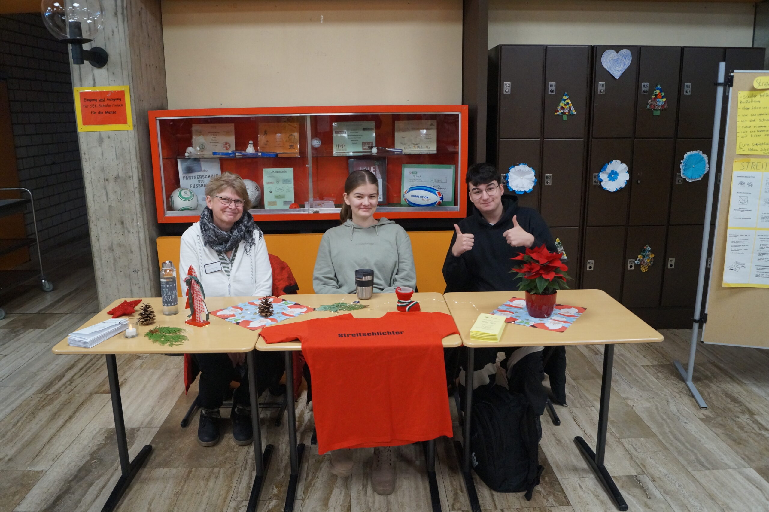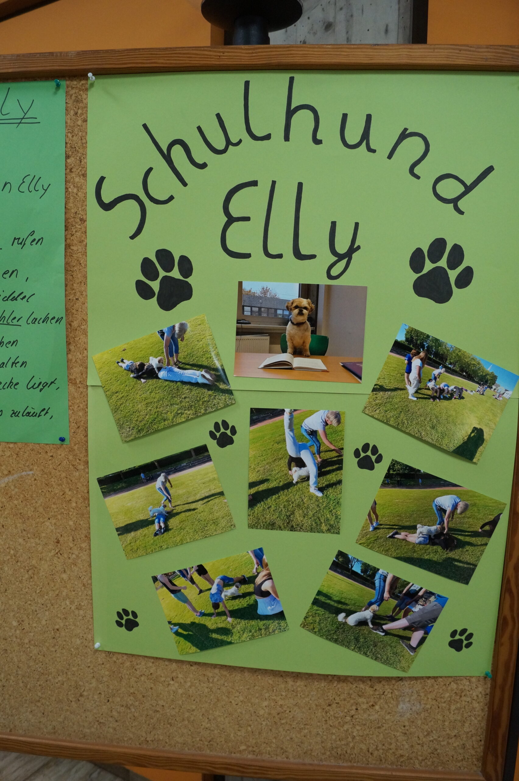 Durch unsere Projekte mit Friederike von Fürstenberg und Elisabeth Bonin wurde der Eingangsbereich zu einer Erlebnisstation zum Thema Nachhaltigkeit. Nicht zuletzt sorgte unser Schulhund Elly für viele Streicheleinheiten.